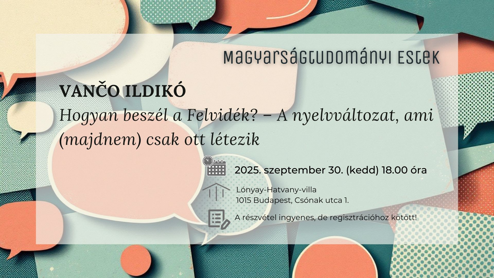 [Hungarologia] Vančo Ildikó: Hogyan beszél a Felvidék? – A nyelvváltozat, ami (majdnem) csak ott létezik (Magyarságtudományi Est szeptember 30-án)